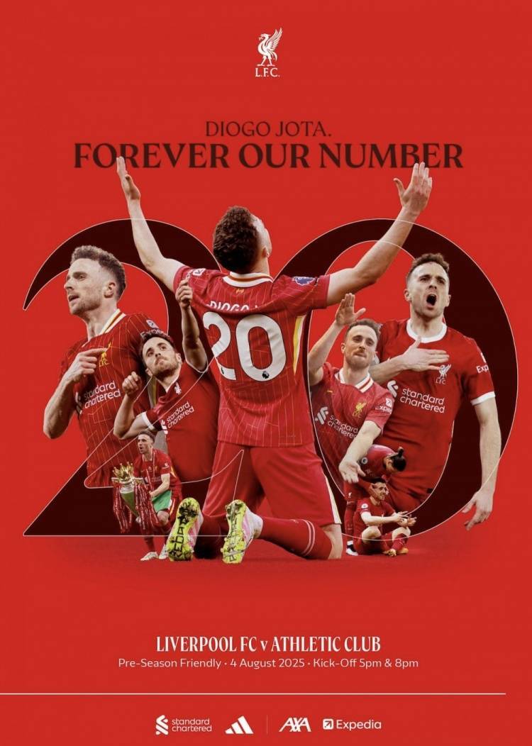 利物浦官方:在与毕巴比赛日特刊的封面上,特别地向若塔致敬 admin 2025年08月04日 09:30 71 0 直播吧8月4日讯 利物浦官方宣布,在与毕巴鄂竞技比赛日特刊的封面上,特别向若塔致敬。利物浦官方公告:在2025-26赛季安菲尔德首场比赛日的特刊封面上,特别向若塔致敬!他是永远的利物浦20号球员。本期特刊是为周一与毕尔巴鄂竞技的比赛而推出,期刊回顾了利物浦官方宣布退役若塔球衣号码的消息,并记录了俱乐部今夏在国内外季前赛旅途中所收到的动人致敬。同时,球队也缅怀了近期不幸离世的利物浦传奇人物威利-史蒂文森和乔伊-琼斯,并向他们的杰出贡献致以崇高敬意。 标签: #史蒂文森 #巴比赛日 #毕巴 #利物浦 #官方 #封面 #向若塔 #竞技 #特刊 #比赛日 #毕尔巴鄂竞技